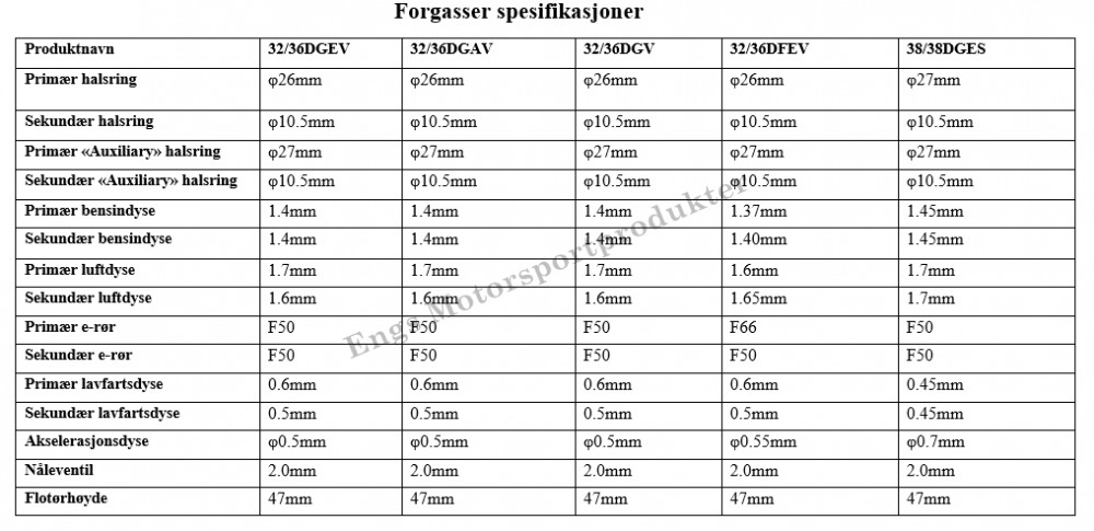 Fajs 32/36 DGAV Fajs 32/36 DGAV leveres med vann choke, synkroniseringsarmer og standard oppsett. NOK1 890,00 inkl. mva. På lager Antall Kjøp Del dette Produktinfo Produktanmeldelser (0) Fajs 32/36 DGAV leveres med vann choke, synkroniseringsarmer og standard oppsett. Se bilde nummer to for spesifikasjoner på forgasseren. Prisen er pr.stk Skriv en produktanmeldelse og del dine erfaringer med dette produktet med andre kunder. Email Navn Din vurdering? 1 star 2 star 3 star 4 star 5 star 6 star Oppgi en tittel for anmeldelsen din Skriv inn produktanmeldelsen i feltet under