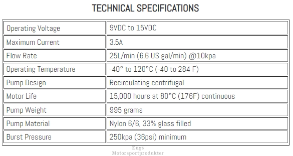 The EBP25 is a ‘brushless’ 12 volt, high flow, magnetically driven water pump with a flow rate of 25 litres per minute. The EBP motor has no brushes to ever wear out and the pump is magnetically driven by the motor, which means that no shaft sealing is required. The many EBP applications include: booster for car heater and LPG systems, solar pump applications, water cooled motorcycle, go-kart engines, turbo air / water intercoolers & household irrigation.